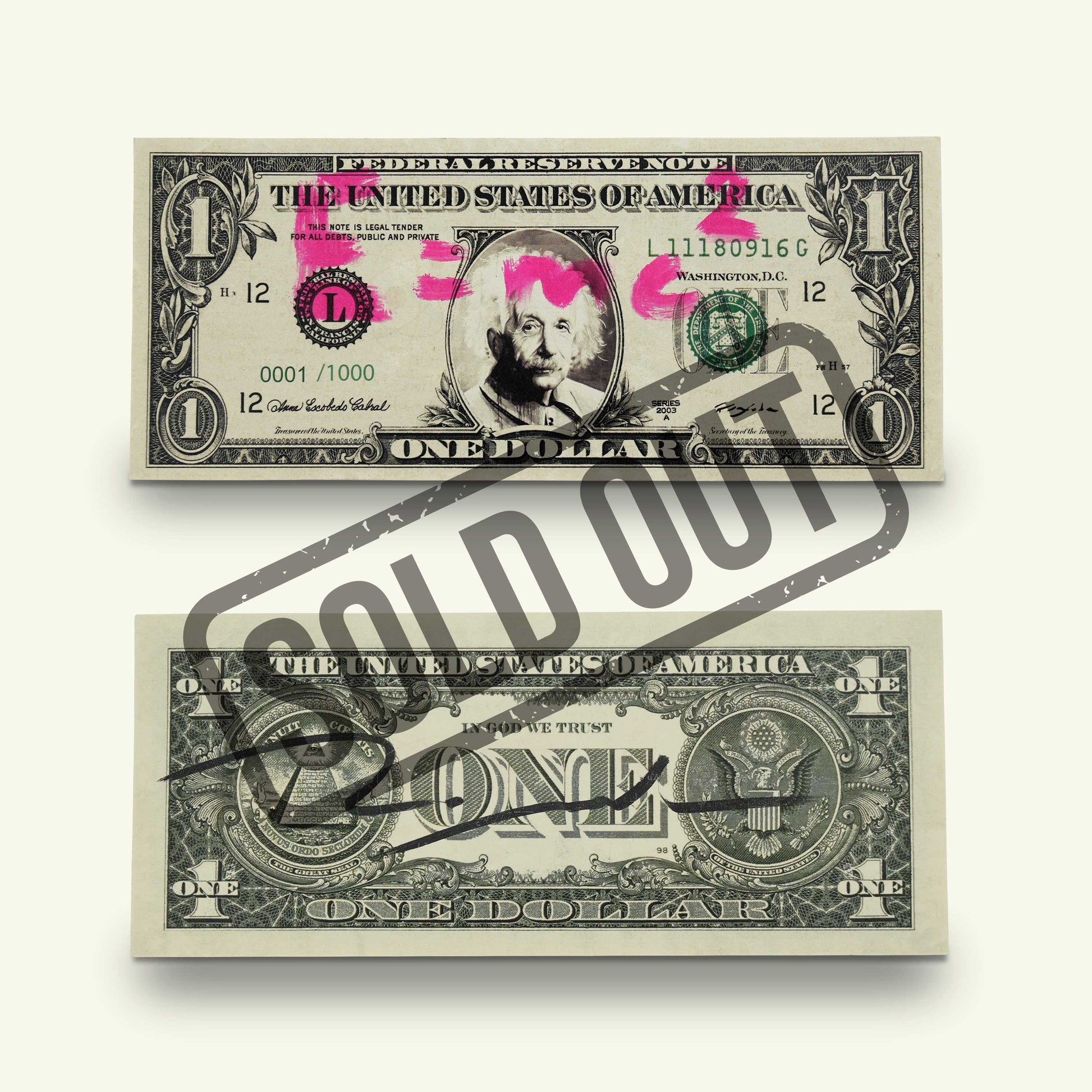 Cada dólar viene presentado en un soporte de metacrilato especialmente diseñado para que puedas exhibirlo, destacando aún más sus detalles bajo luz UV.